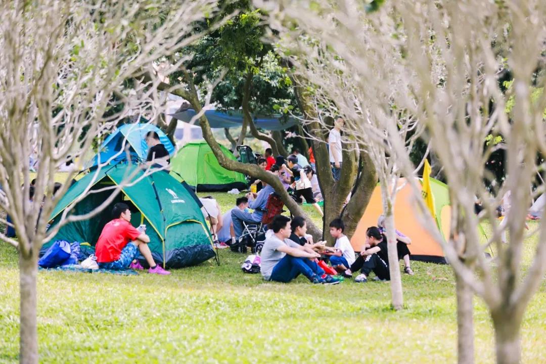 △市民在香山湖公園露營