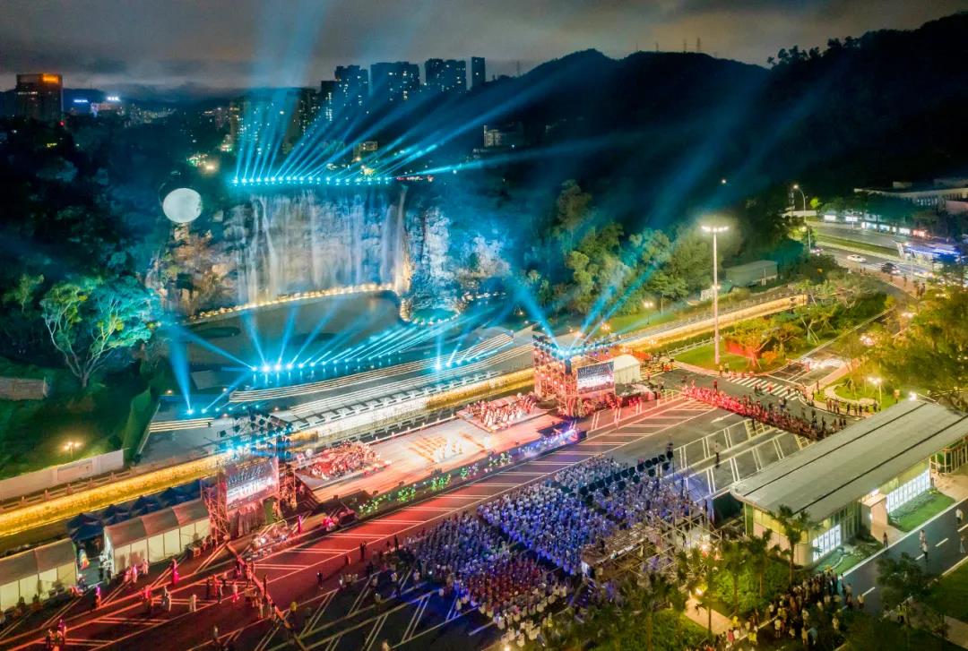 山海相擁、瀑布飛流。燈光璀璨,優(yōu)美歌聲響徹海天公園。為祖國71周歲生日獻上贊歌,為珠海的秋天添上濃墨重彩的一筆!