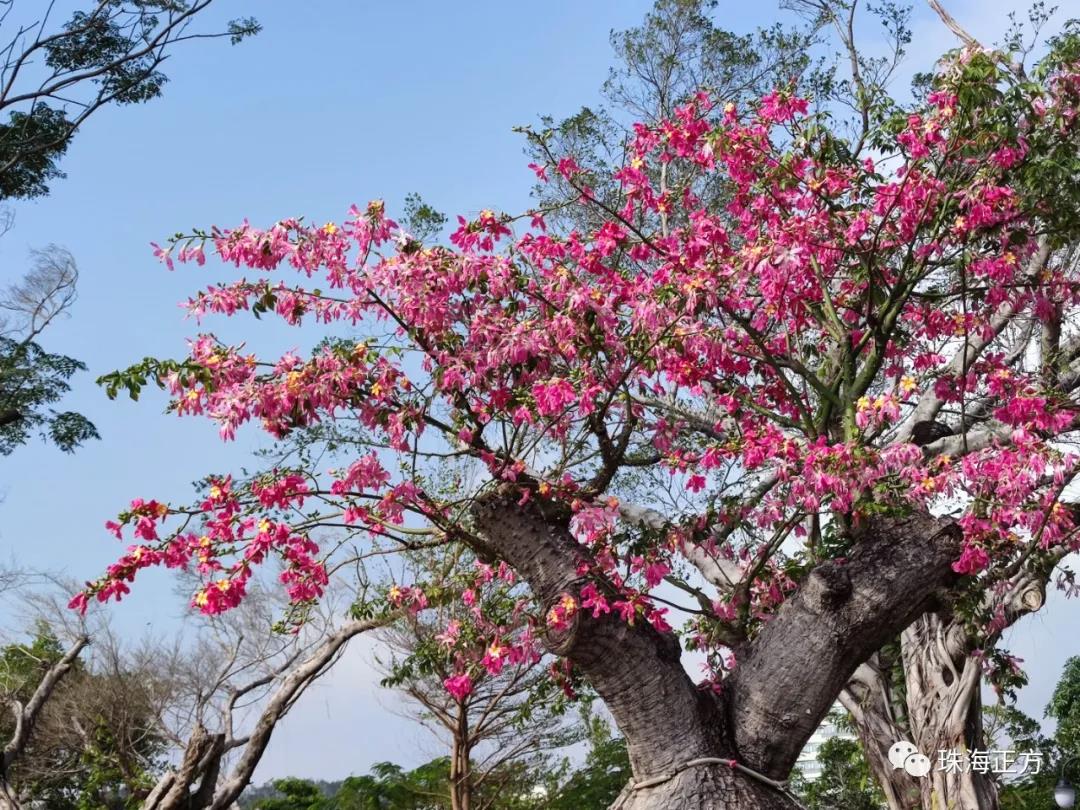 11月,冷空氣頻頻造訪北國。白雪蓋住了屋檐,銀枝掛上了樹梢,然而珠海市民的朋友圈卻令人羨慕。行走在珠海的大街小巷,一株株粉紅色、錯(cuò)落有致的異木棉競相開放,讓整個(gè)城市盡顯浪漫與多情。