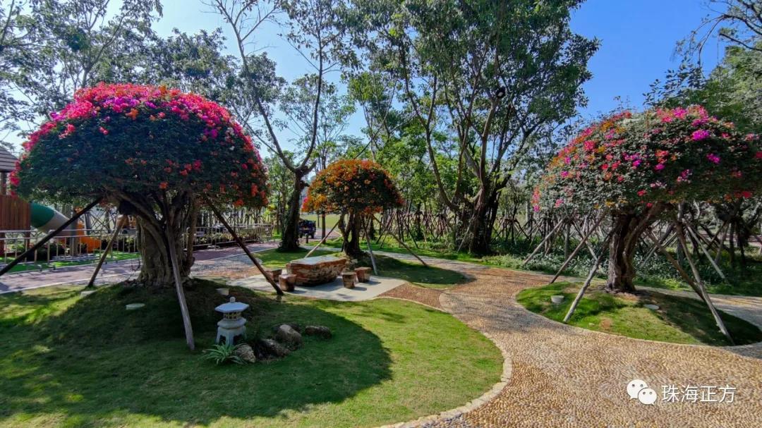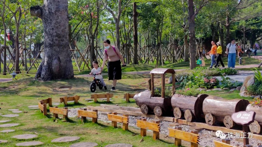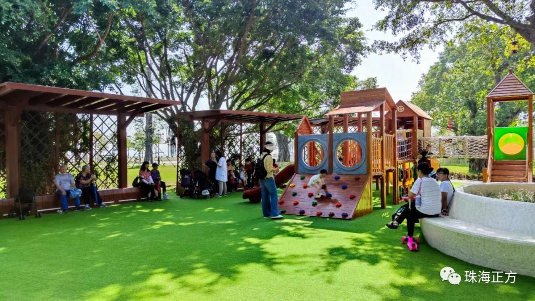 在游園賞景的同時(shí),為增添公園的互動(dòng)性和趣味性。香洲正方還貼心在古樹名木區(qū)增設(shè)了兒童樂園,滿足孩子們的玩樂需求。