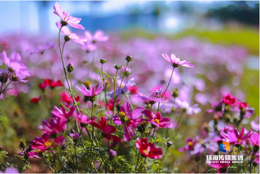 情侶南路日華花園到海灣園附近路段,金魚草、波斯菊、醉蝶花組成的炫彩花海,漸欲迷人眼。