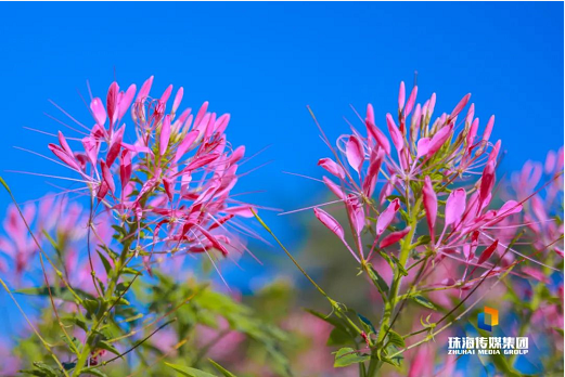 情侶南路全球通大廈對出路段,醉蝶花同樣開得旺盛,遠處的港珠澳大橋,眼前的鮮花,令人忍不住拿出相機,留下最美一刻。