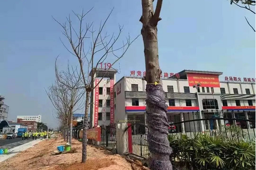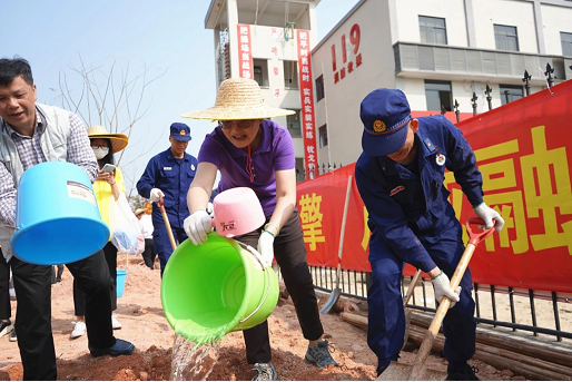 植樹現(xiàn)場(chǎng),大家干勁十足、意氣風(fēng)發(fā),由香洲區(qū)領(lǐng)導(dǎo)干部帶頭,大家三兩一組,分工協(xié)作。有的修根上漿、搬運(yùn)樹苗;有的揮鍬鏟土、挖穴回填;有的培土圍堰、踩實(shí)固苗;有的提水澆灌、支撐定型。眾志齊心,熱火朝天,配合默契。不到兩個(gè)小時(shí),一大片鳳凰木樹苗昂然挺立、錯(cuò)落有致,在柔暖的春風(fēng)中展現(xiàn)著蓬勃生機(jī),將屏東三路植樹現(xiàn)場(chǎng)點(diǎn)綴得春意盎然,為南屏科技生態(tài)城增添了一片新綠。