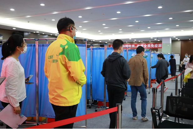為了安全、高效地完成接種工作,接種現(xiàn)場按照接種流程,分別設(shè)置了預(yù)檢分診區(qū)、信息錄入?yún)^(qū)、接種區(qū)、留觀區(qū)、不良反映觀察區(qū)、等候區(qū),并在正方·云創(chuàng)園1樓配備一輛救護(hù)車,隨時守護(hù)接種安全。
