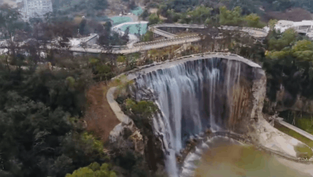 右顧棧道瀑布,水潭和石間流水的景觀下,飛流磅礴而泄,充滿負(fù)離子的水汽映襯下,站在瀑布頂從高空俯瞰,可將整個(gè)海天公園及其周邊景色盡收眼底。
