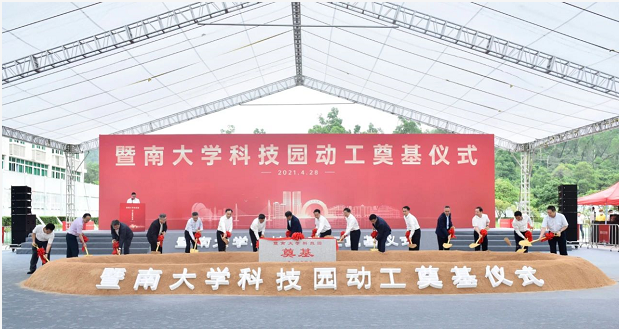 4月28日上午,暨南大學(xué)科技園動工建設(shè)。市委書記郭永航、市長姚奕生,暨南大學(xué)黨委書記林如鵬、校長宋獻(xiàn)中出席儀式。