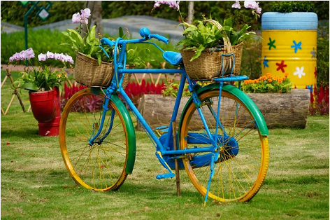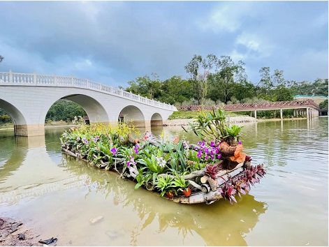 作品描述:該作品以輪胎、油桶、臺風枯枝、廢棄PVC水管、修剪剩下的竹子等破舊廢料為主要材料,通過刷漆加工彩繪,再用時花、植物點綴,營造出特色主題小景,不僅可以美化景觀,還起到了科普垃圾分類,引導(dǎo)市民提高環(huán)保意識的作用。