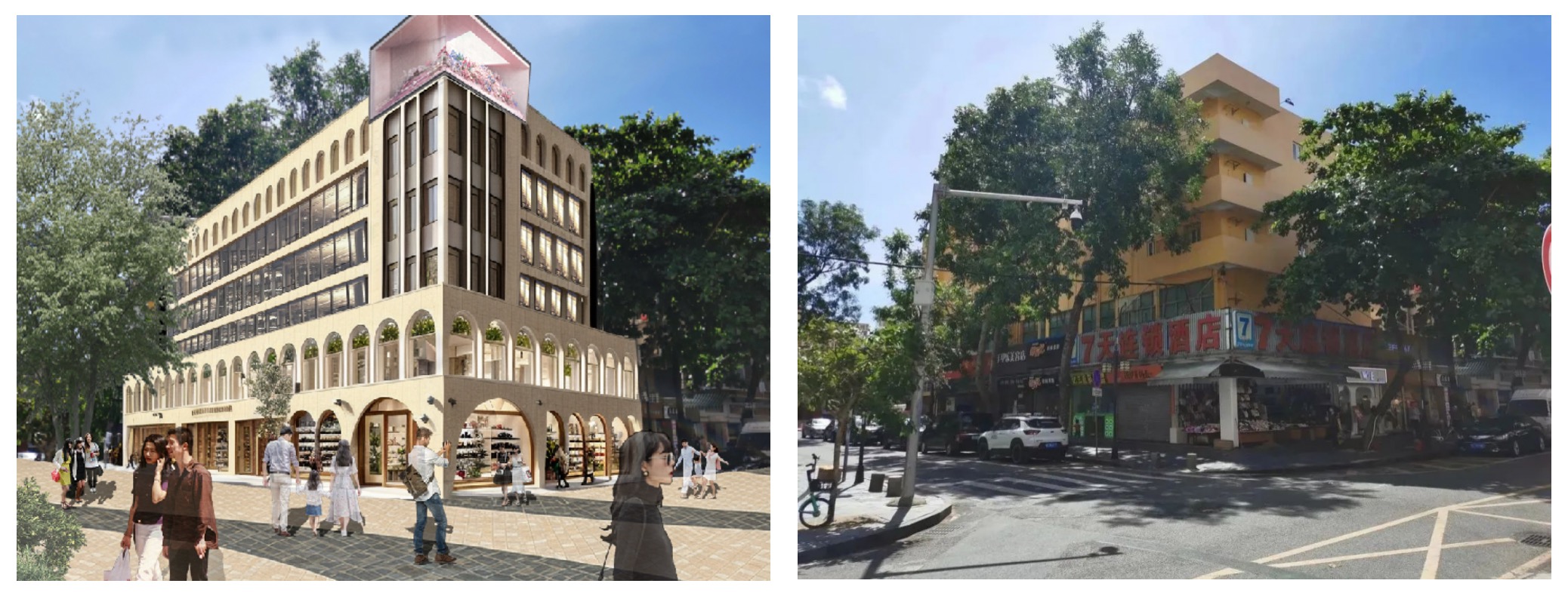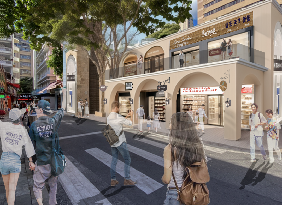 通過對(duì)片區(qū)不同位置、節(jié)點(diǎn)的劃分,進(jìn)行街區(qū)分級(jí)改造。從具有葡澳特色風(fēng)格的牌坊作為形象展示窗口吸引客流進(jìn)入,到臻選樓棟設(shè)計(jì)師打造一樓一景,引導(dǎo)人流進(jìn)入片區(qū)的核心。香洲埠將用借助歷史和現(xiàn)代的碰撞,吸引更多的新生代人群,延續(xù)百年商埠的煙火氣。