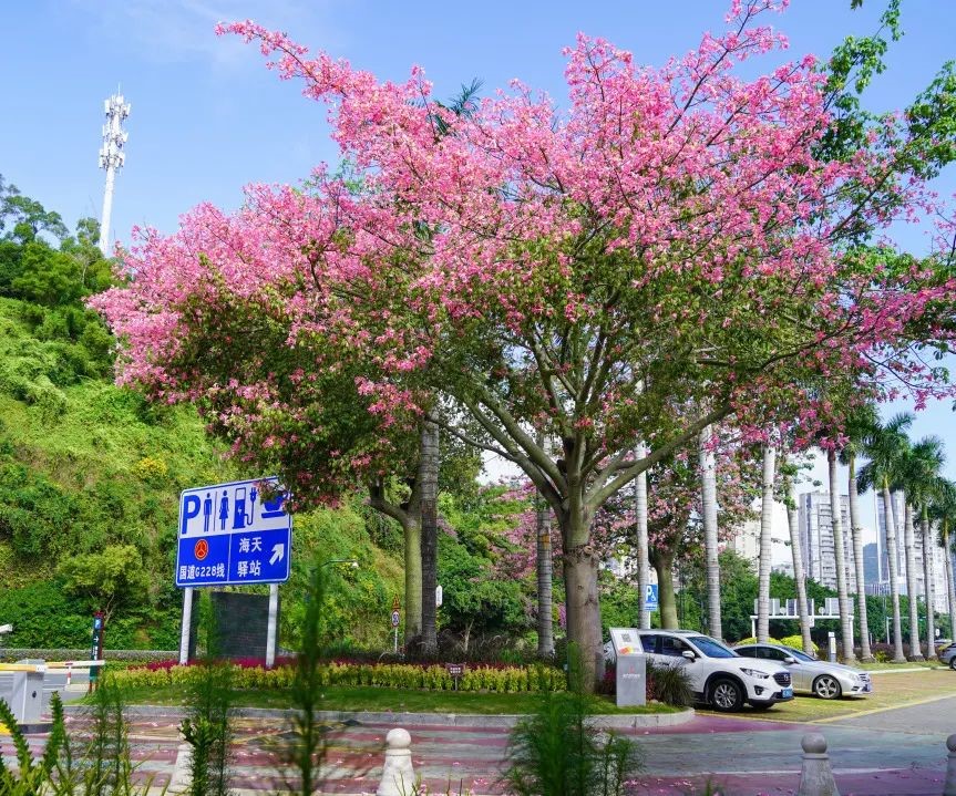 冬日的珠海,綠樹蔥蔥,鮮花綻放