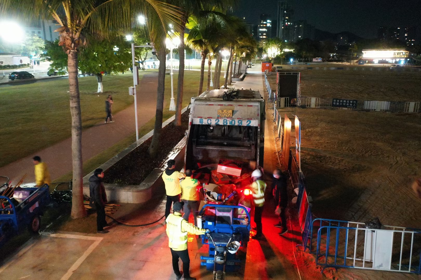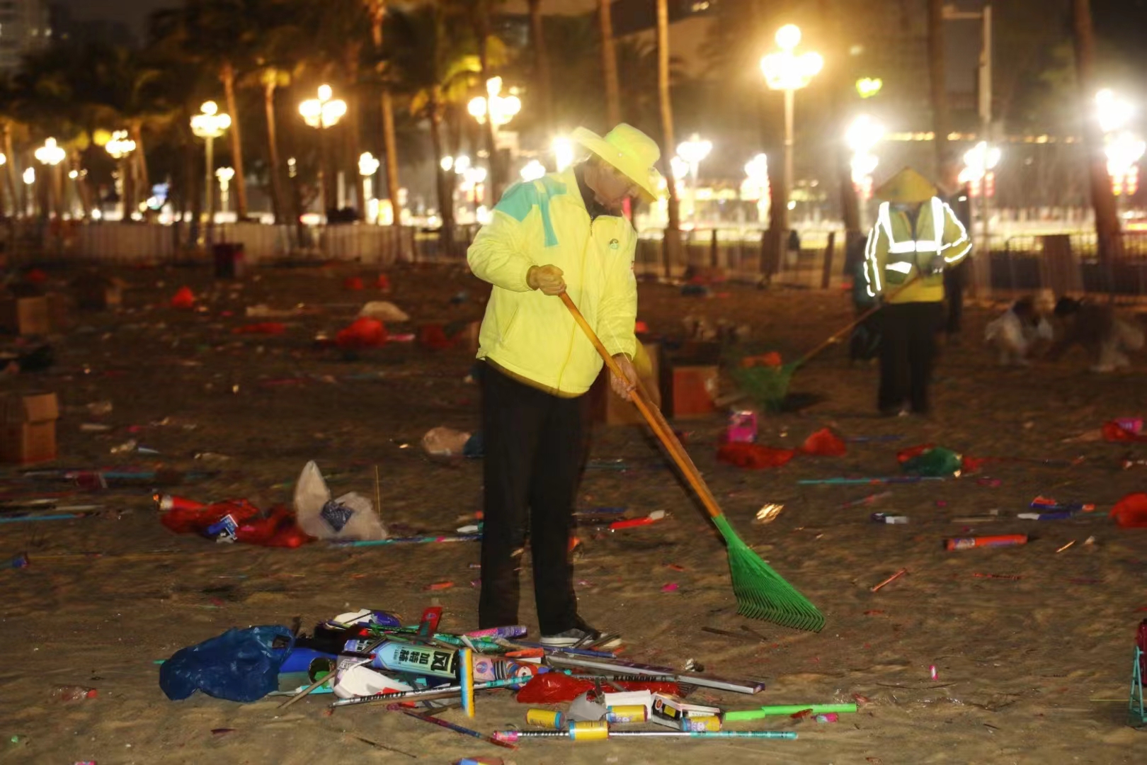 香洲區(qū)開放的可燃放煙花區(qū)域,均在正方集團管養(yǎng)范圍內(nèi)。自春節(jié)假期以來,正方集團累計安排226人次開展煙花燃放后的保潔工作,完成燃放煙花垃圾清理約112.5噸,各區(qū)域接待煙花燃放及觀賞群眾超過15萬人次。為確保煙花燃放后管養(yǎng)區(qū)域第一時間恢復(fù)干凈整潔,24時以后,保潔人員進入現(xiàn)場,打掃市民游客燃放煙花爆竹產(chǎn)生的垃圾,經(jīng)常一干就是5、6個小時,將海灘、公園恢復(fù)原貌。