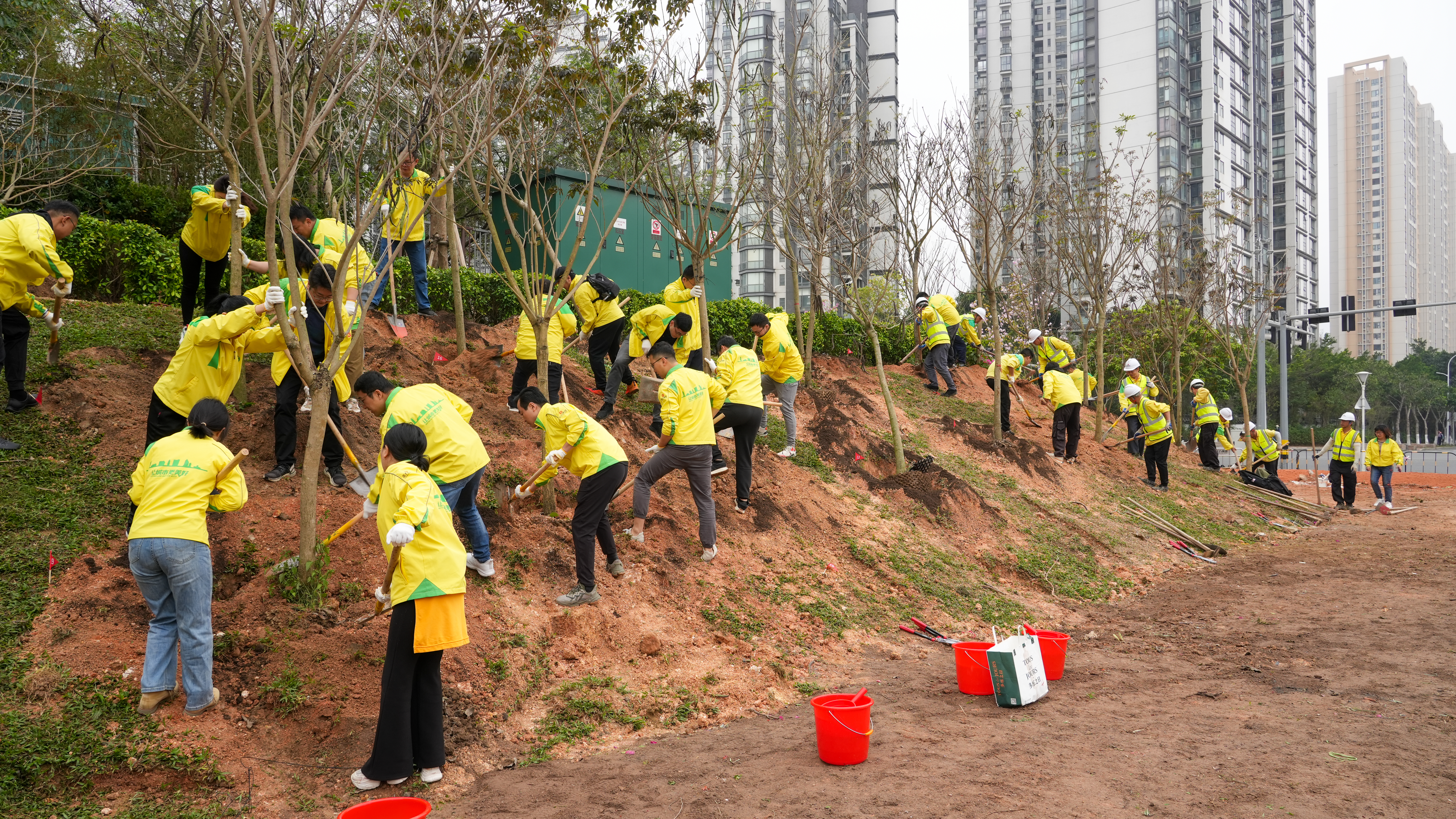 在技術(shù)人員的指導(dǎo)下,參與人員積極迅速投入到植樹(shù)活動(dòng)中,挖坑、扶苗、填土、澆水……150棵紫花風(fēng)鈴木、宮粉紫荊在春風(fēng)中綠意萌動(dòng)、生機(jī)盎然。正方集團(tuán)將點(diǎn)對(duì)點(diǎn)落實(shí)本次種植樹(shù)木的后期管護(hù)工作,保障樹(shù)木的成活率和植樹(shù)成效,守護(hù)香洲盎然生機(jī),為生態(tài)文明建設(shè)再添新綠。