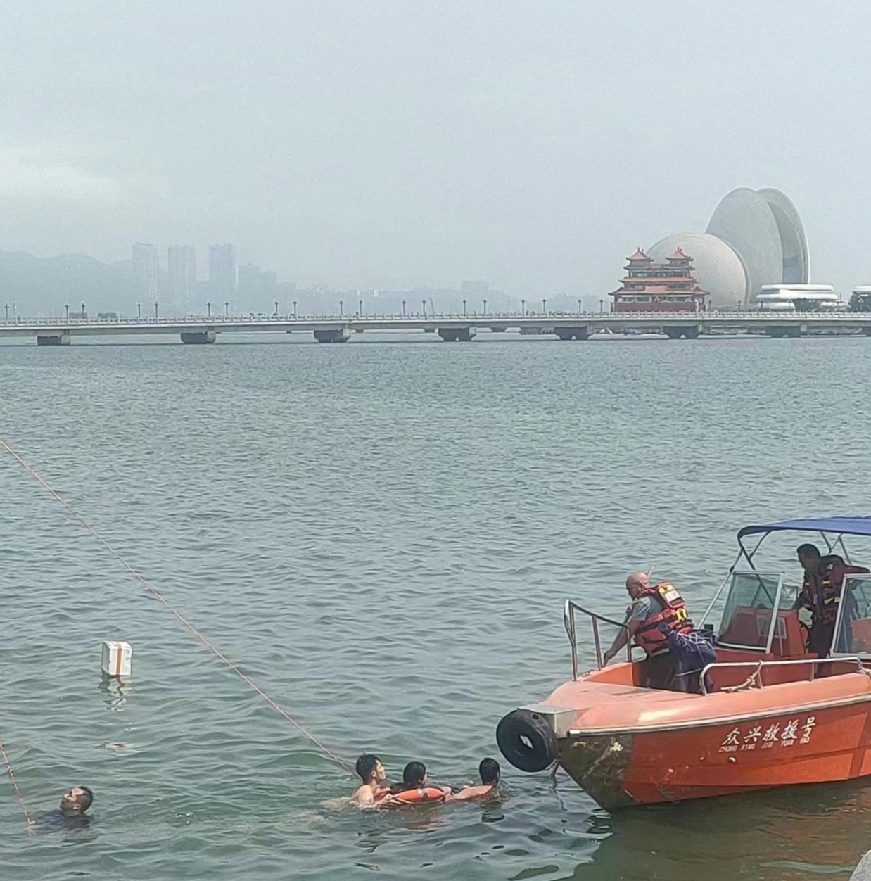 接到支援呼叫,黎啟成跳上自行車飛奔而來。憑借多年的救生員工作經(jīng)驗,黎啟成沉著冷靜分析現(xiàn)場救援情況,果斷跳入海中。三人協(xié)力托起落水女子,一邊安撫情緒,一邊將女子拖往岸堤較低處救助。在水中艱難前行了約200米后,派出所呼叫的救援船趕來,將四人救助上船。隨后經(jīng)醫(yī)務人員檢查,確認該女子身體無大礙。
