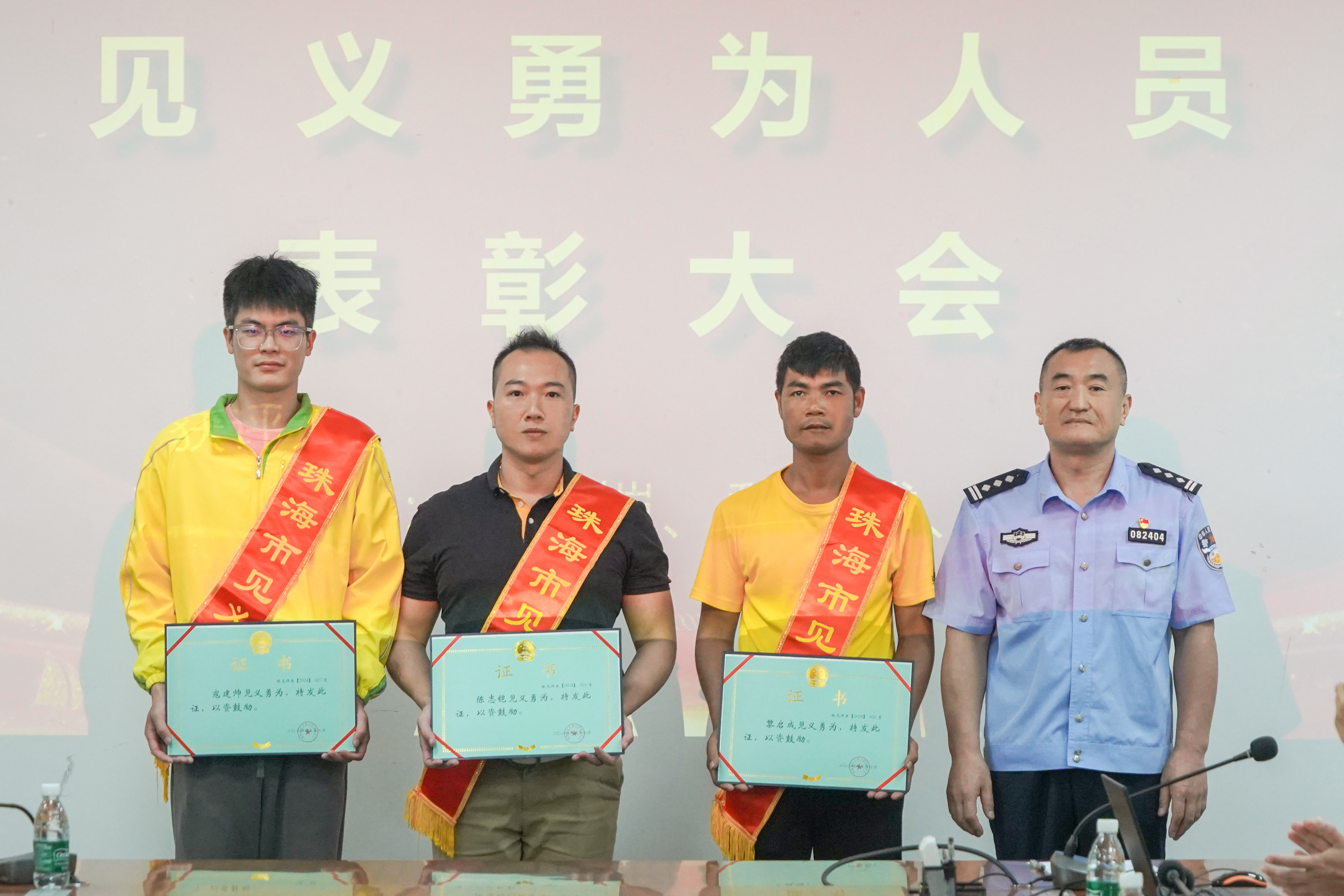 為弘揚正氣、表彰先進,5月9日上午,正方公共運營公司召開見義勇為表彰大會,為公司員工黎啟成、寇建帥頒發(fā)《見義勇為確認證書》。珠海市公安局治安警察支隊副支隊長趙曉軍、治安警察支隊五大隊大隊長葉祺、珠海市公安局香洲分局治安管理大隊教導(dǎo)員劉天敏等相關(guān)部門領(lǐng)導(dǎo),正方公共運營公司經(jīng)營班子和職工代表參加。