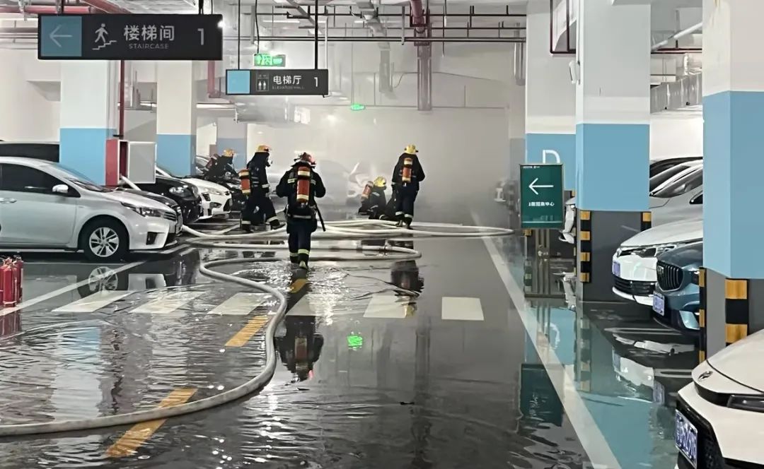 險(xiǎn)情發(fā)生后,嗆人的濃煙迅速在地庫彌漫開來。正在地下停車場(chǎng)巡查的物業(yè)人員第一時(shí)間發(fā)現(xiàn)火情,他臨危不亂,迅速使用地庫內(nèi)配備的手推式滅火器滅火,并及時(shí)向消控室報(bào)告火情。