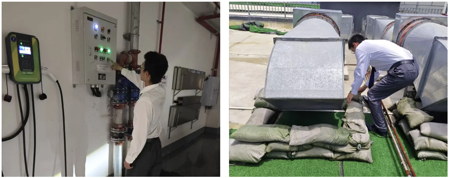 在情侶路沿線運營商圈迅速開展排水口清掏清理,大型玻璃與廣告牌加固,發(fā)電機、抽水泵等防汛設備測試等工作,確保防風排水設施良好,應急物資充足。