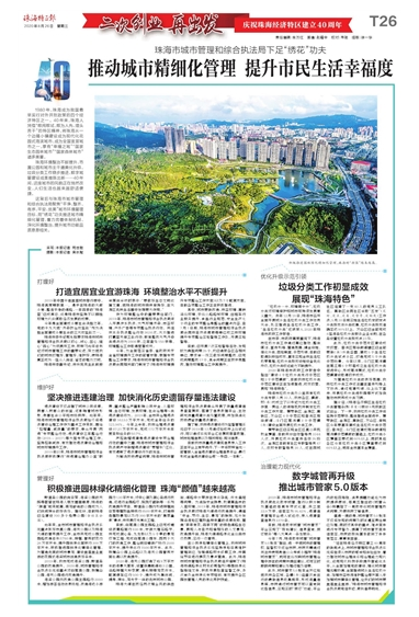 珠海環(huán)境整治不斷提升、市屬公園和城市主干道美化升級、垃圾分類工作穩(wěn)步推進、數(shù)字城管建設成果推陳出新……40年間,這座城市的風貌正在悄然改變,人們生活也越來越舒適便捷。