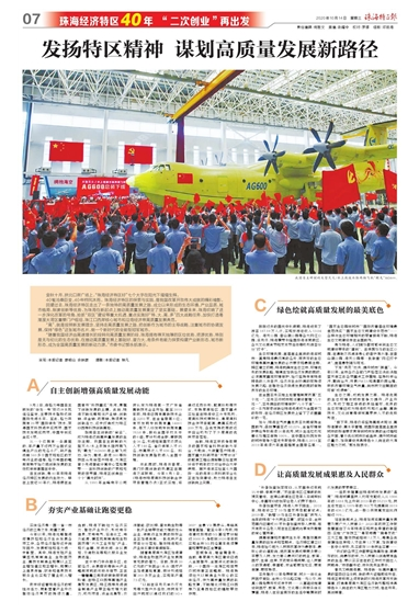 回望過去,珠海經濟特區(qū)走出了一條獨特的高質量發(fā)展之路,成立以來形成的生態(tài)環(huán)境、產業(yè)品質、城市格局、制度創(chuàng)新等優(yōu)勢,為珠海在新起點上推動高質量發(fā)展奠定了堅實基礎。展望未來,珠海吹響了進一步深化改革的號角,搶抓“雙區(qū)”建設等重大機遇,重點實施好“特、大、高、多”四大戰(zhàn)略任務,加快打造粵港澳大灣區(qū)重要門戶樞紐、珠江口西岸核心城市和沿海經濟帶高質量發(fā)展典范。