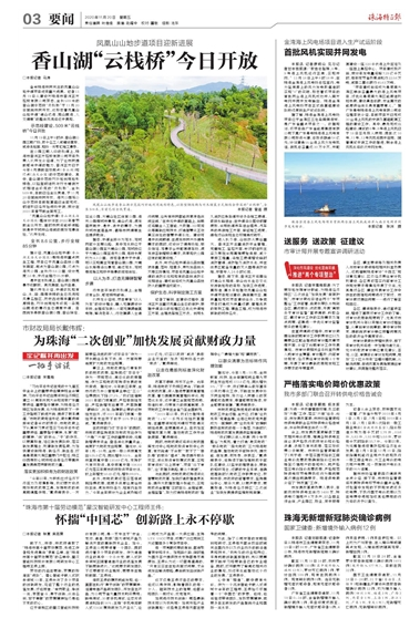 備受珠海市民關注的鳳凰山山地步道項目迎來重大進展。記者11月19日從建設方珠海市香洲正方控股有限公司獲悉,全長509米的香山湖示范段“云棧橋”于11月20日面向市民開放,這標志著鳳凰山山地步道“通山達海、攬山瞰海、人文健康”的整體風貌將逐步展現(xiàn)。