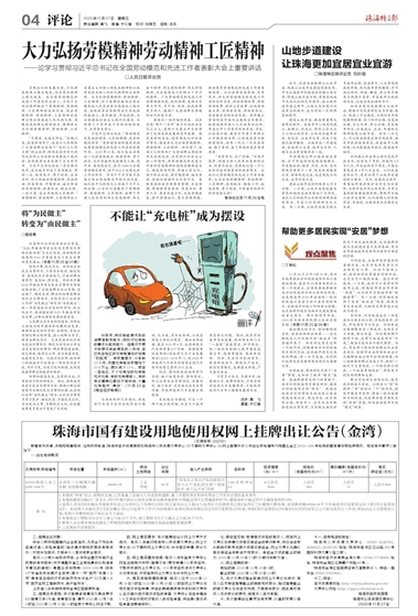而鳳凰山步道香山湖示范段開放當(dāng)天,就迎來了市民、游客約1.5萬人次,開放后的首個周末,日客流量更是在4萬人次左右。人們的喜愛和認(rèn)可,更是證明了山地步道建設(shè)的必要性。當(dāng)然,在建設(shè)過程中,希望始終秉持保護自然生態(tài)的原則,合理開發(fā)利用山體資源,并有完善的配套措施相匹配,爭取早日把山地步道建好,從而增強人們的獲得感、幸福感,讓珠海更加宜居宜業(yè)宜游。