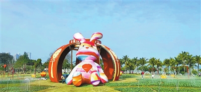 海濱公園的新春裝飾。 珠江晚報記者 吳長賦 攝