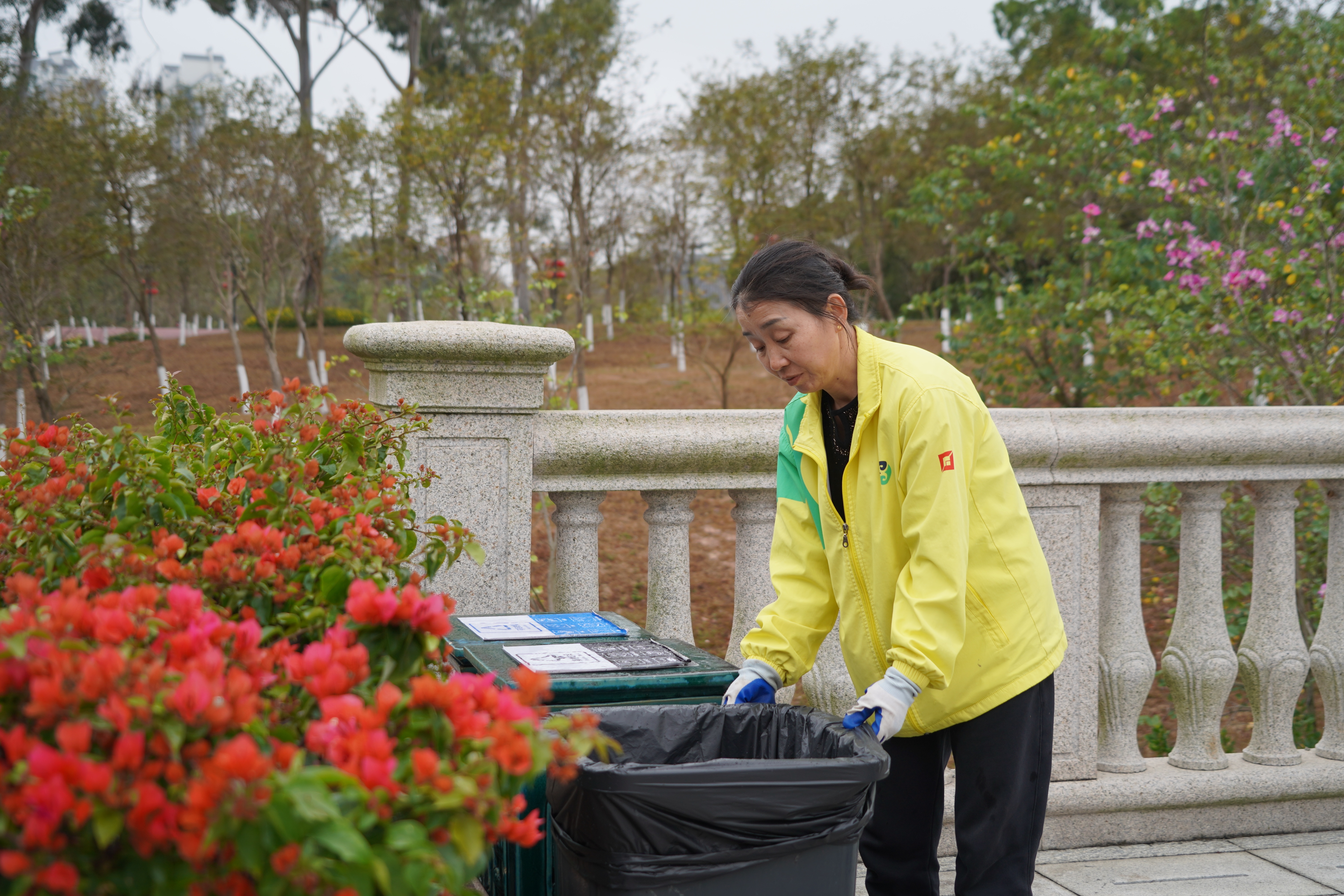 譚梅,現(xiàn)任正方公共運(yùn)營公司鳳凰山管理部香山湖片區(qū)保潔班長。香山湖公園是珠海標(biāo)志性公園之一,地處鳳凰山西南角,公園面積大、人流量大,對環(huán)境衛(wèi)生要求高。