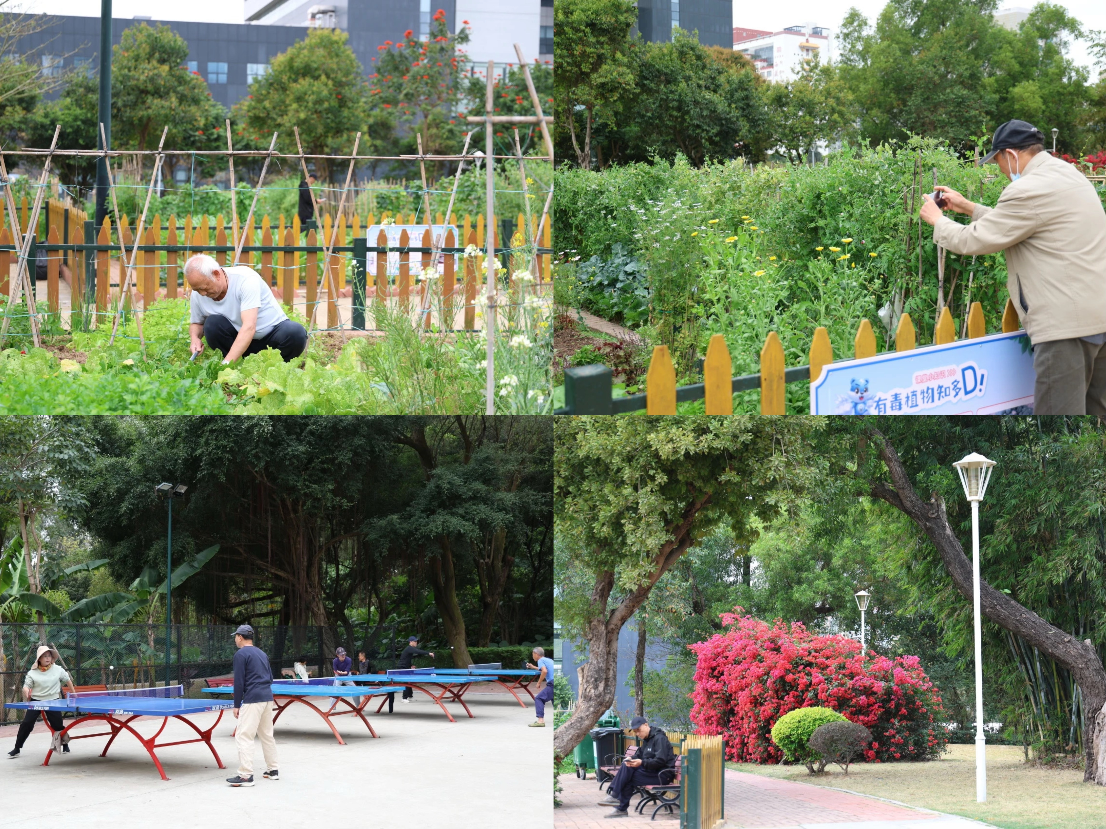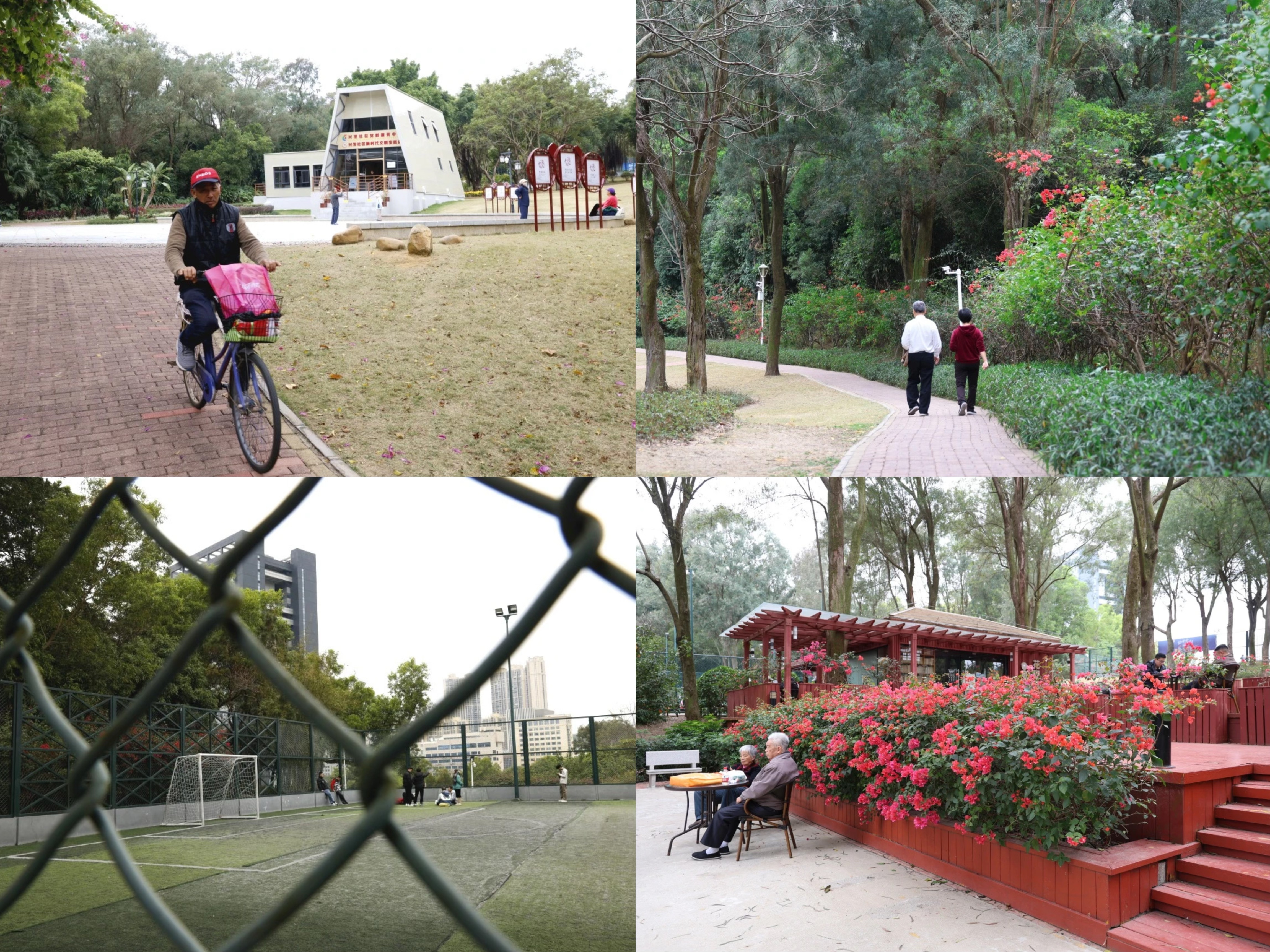 公園有各項(xiàng)運(yùn)動和休閑設(shè)施,健身器材、乒乓球桌、羽毛球場、籃球場、五人足球場、涼亭……皆是一應(yīng)俱全。騎行、散步、航拍、野餐……市民活動是春天最美的色彩。