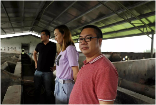 扶貧小組在養(yǎng)豬場(chǎng)進(jìn)行實(shí)地考察