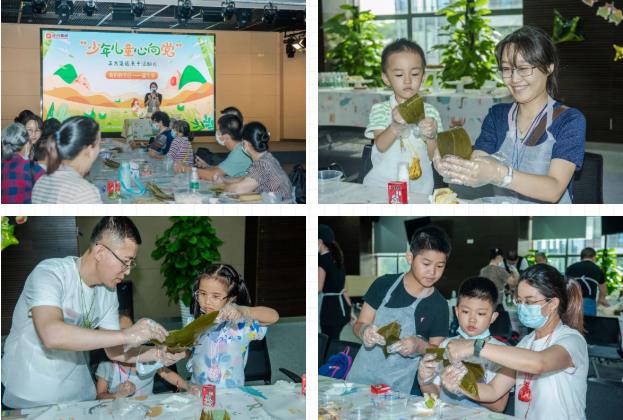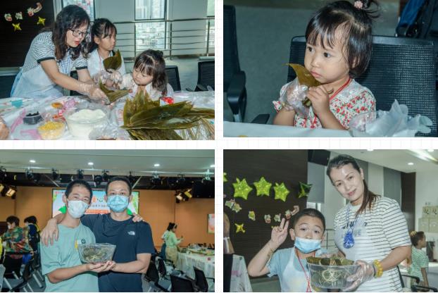 在制作粽子前,大家通過生動(dòng)有趣的視頻了解了端午節(jié)的由來和習(xí)俗,并熱情地參與有獎(jiǎng)問答環(huán)節(jié)。小朋友們爭(zhēng)先恐后地舉手、搶答現(xiàn)場(chǎng)主持人提出的問題,現(xiàn)場(chǎng)氣氛十分活躍有趣。