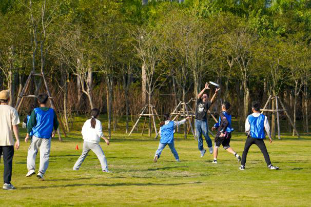 活動(dòng)特別安排了時(shí)下廣受青年喜愛的新興運(yùn)動(dòng)——飛盤,邀請(qǐng)專業(yè)教練進(jìn)行飛盤知識(shí)講解和動(dòng)作指導(dǎo)。青年們?cè)跓嵘砗蠓纸M開展比拼飛盤對(duì)抗賽,在奔跑、躲避和飛撲阻隔中體驗(yàn)激情互動(dòng)的樂趣,通過團(tuán)隊(duì)合作享受拼搏帶來的喜悅,享受健康生活,收獲青春力量。